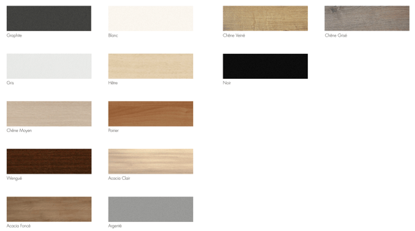 Fond : Panneau mélaminé de 8 ou 19 mm selon la configuration.
