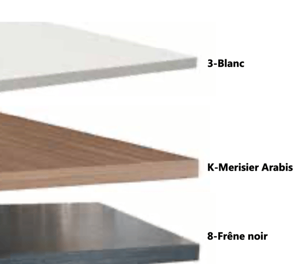 Matériau : Panneaux mélaminés (épaisseur 18 mm et 22 mm), traités anti-rayures et anti-reflets