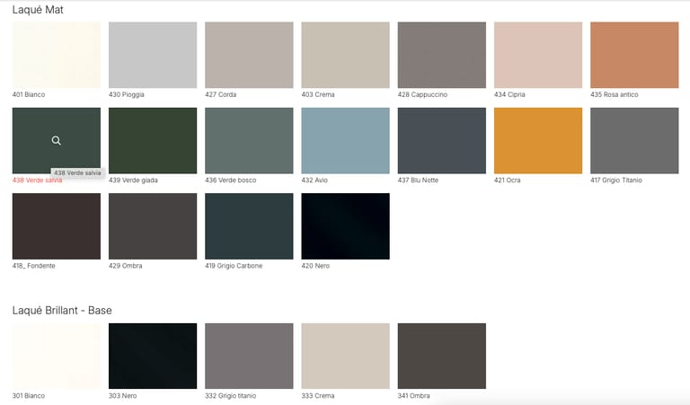 Finitions : Cristalplant® naturel ou laqué mat / brillant dans les coloris du catalogue