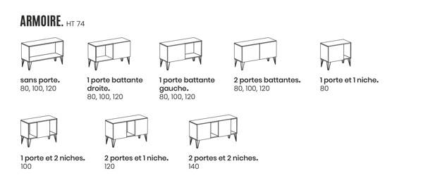 Hauteur 74 cm x Profondeur 45 cm x Longueur suivant composition ci dessous :