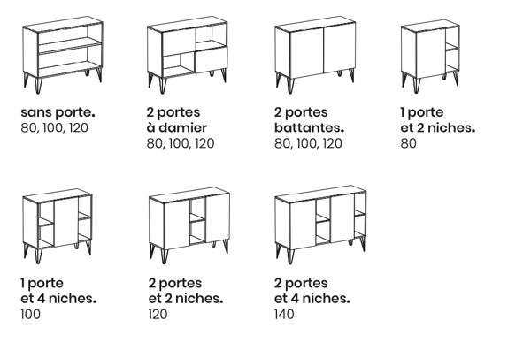 - Configurations disponibles : - Sans portes (étagères ouvertes).
