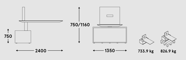 Son plateau en lévitation, réglable en hauteur électriquement, apporte un confort optimal et une flexibilité d’usage, que ce soit en espace de réunion, en bureau de direction ou en zone de convivialité.