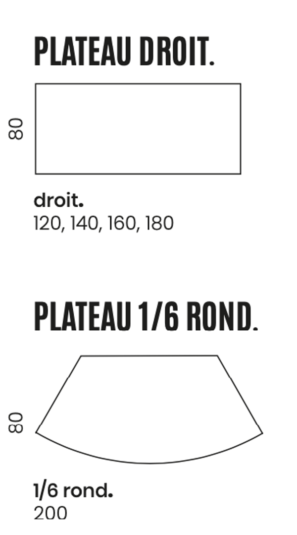 Poignées : Deux poignées à l'extrémité du plateau permettant la rotation et le mécanisme de rabattement sécurisé