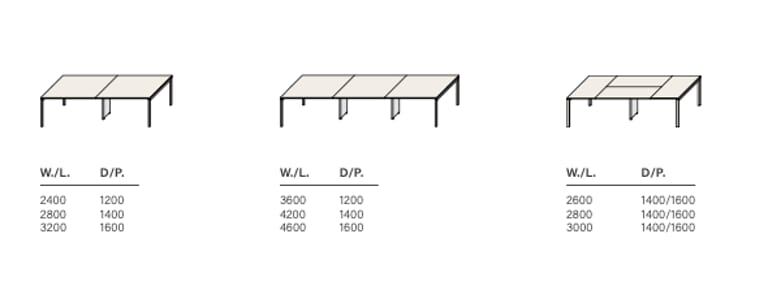 les piétements intermédiaires décalés sont ajoutés lorsque plusieurs plateaux sont assemblés afin de garantir stabilité et confort des utilisateurs.
