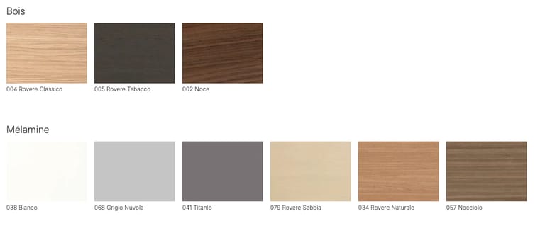 Bois, mélamine, laqué mat, Fenix®, similicuir ou cuir