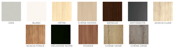 25 mm d’épaisseur recouvrement en mélamine de 120 g/m2 pour les deux côtés et une densité de 630 ± 5 kg/m3.