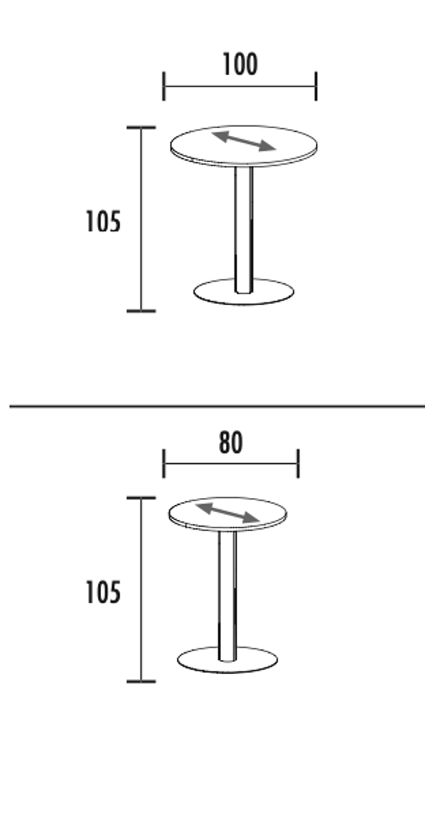 La série de tables hautes ROL mesure 105 cm de haut et dispose de deux versions de plateau pour s'adapter parfaitement à n'importe quel environnement: